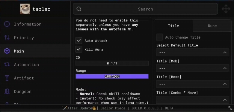 AUTO FARM, AUTO DUNGEON, WORLD BOSS, AUTO QUEST
