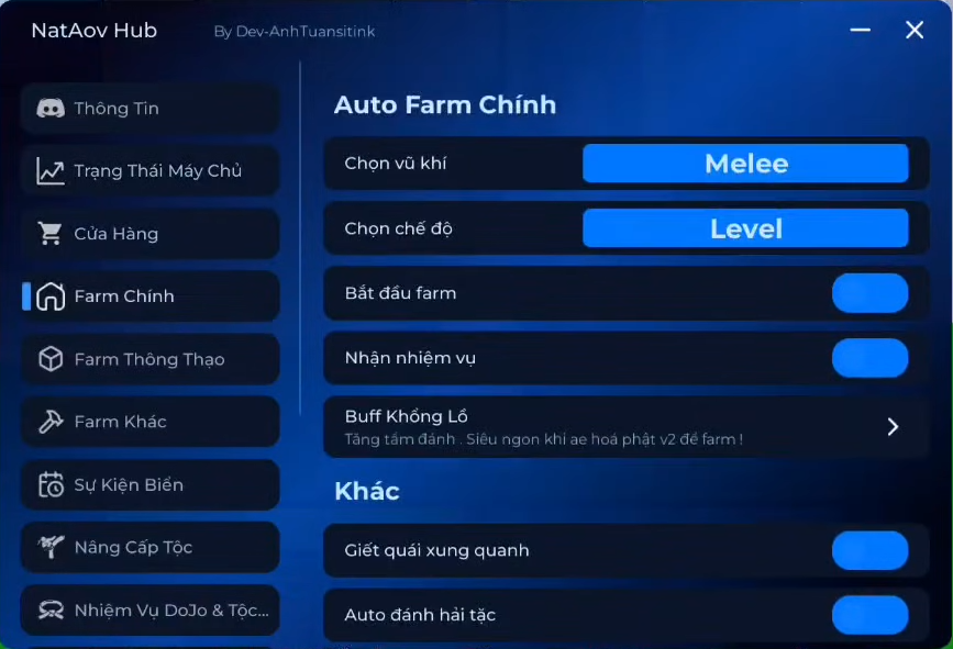 AUTO FARM,HỖ TRỢ TIẾNG VIỆT, FAST ATTACK, SEA EVENT, RAID & MORE