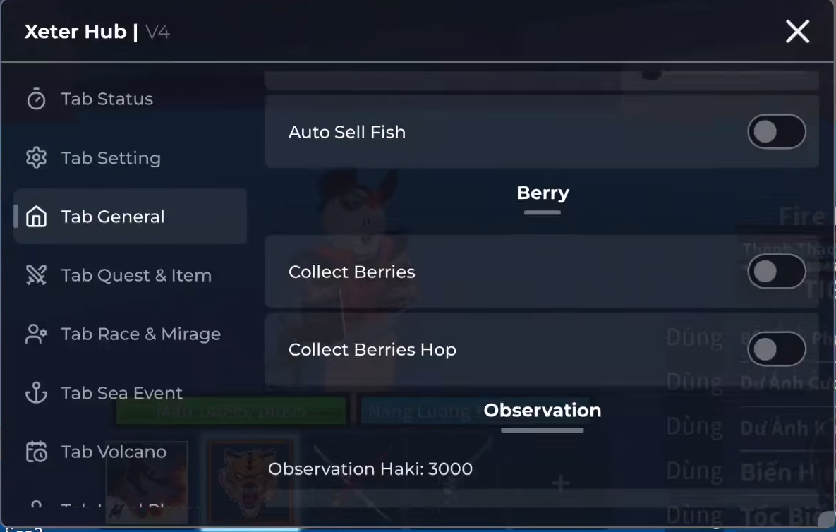 AUTO FARM, FAST ATTACK, SEA EVENT, AUTO AUTO RAID, MASTERY FARM, V4